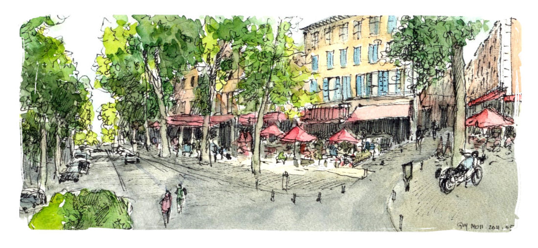 Recuerda que un «boulevard» es originalmente un sendero plantado de árboles que rodea una ciudad y que usualmente normalmente el espacio donde estaban las antiguas murallas.