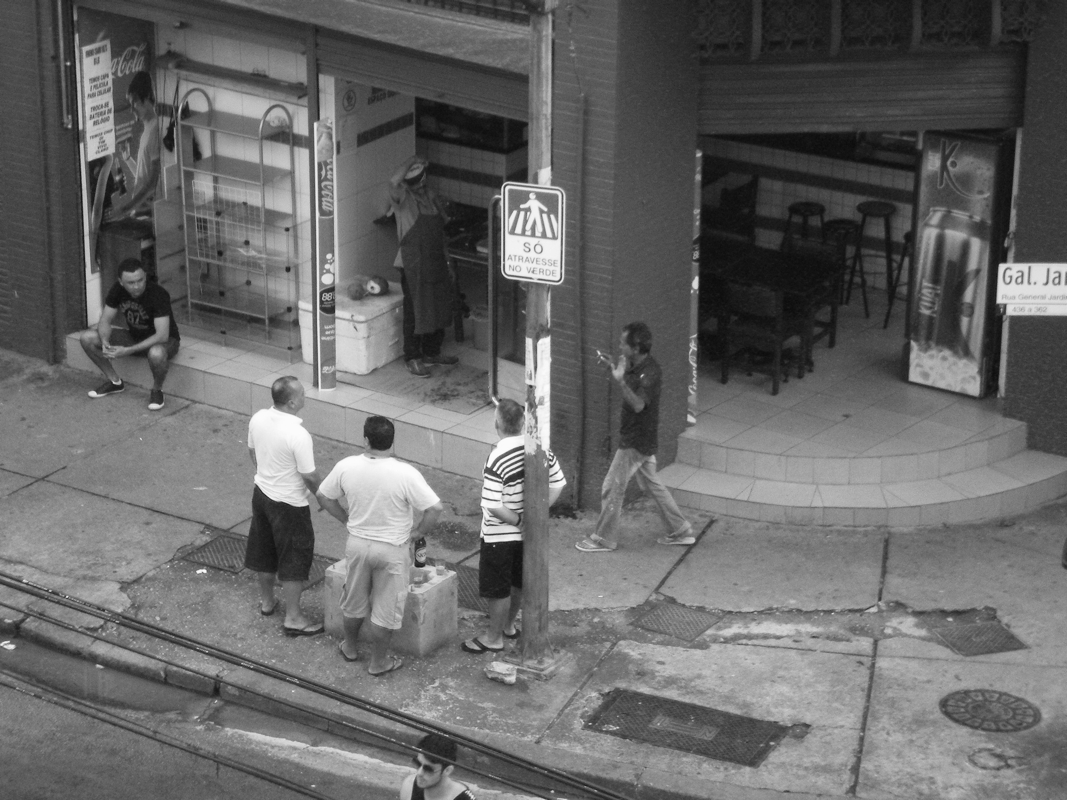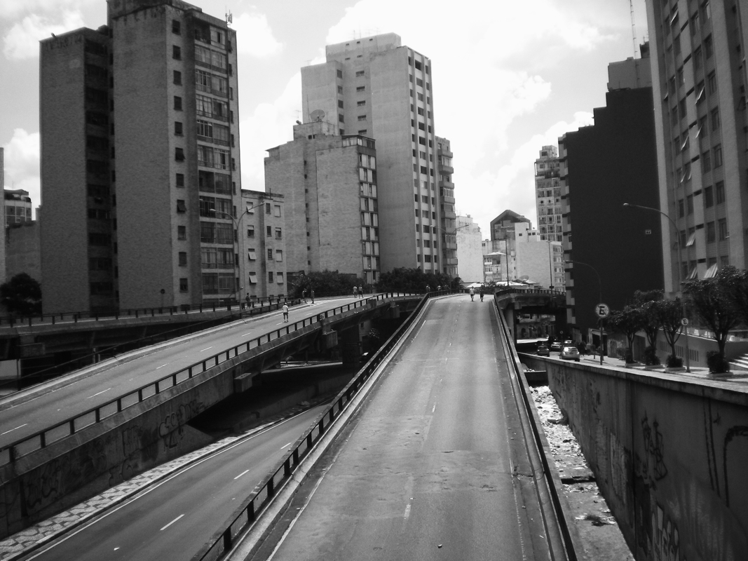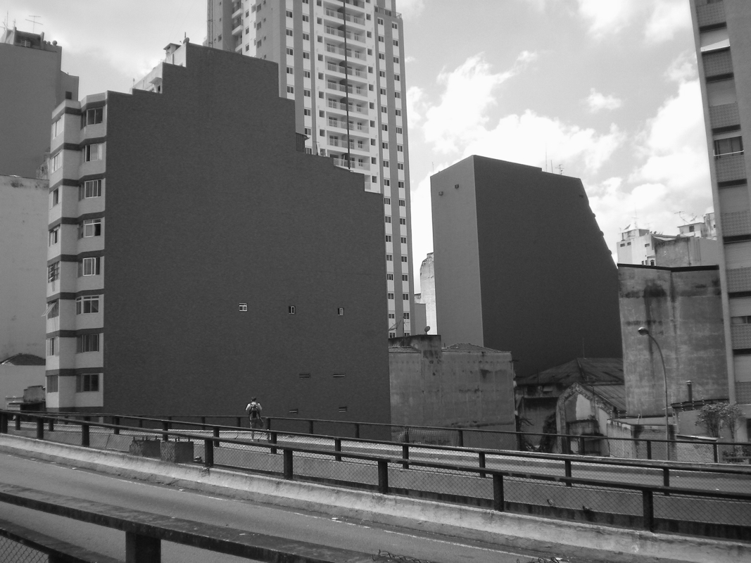 Por último, queremos hacer una breve nota sobre la serie fotográfica que acompaña este texto. Consideramos a la imagen visual como una herramienta en diálogo pero autónoma frente a la escritura. Es por eso que la serie no busca ilustrar lo que dice el texto; eso sería simplificarla enormemente, empobrecerla al subordinar lo visual al logos, la palabra razonable, tan cara a la tradición clásica del pensamiento occidental. Con el mismo espíritu experimental antes referido, la etnografía contemporánea hace uso de las imágenes visuales y de otro tipo buscando generar sensaciones, percepciones y afectos que hacen a lo que concebimos como tarea del campo artístico, más que del científico. Su relación es por demás necesaria, y en tal sentido es que apelamos a este montaje de fotografías y texto filosófico que, a su vez, analiza un tipo de forma del conocimiento científico. Arte, ciencia y filosofía dialogan sin eliminarse, sin diluirse uno en otro, en la misma senda de los trabajos de pensadores como los aquí reseñados sobre la cuestión del habitar, cuestión que consideramos también caracteriza al quehacer etnográfico (Álvarez Pedrosian, 2011c). Creemos que una gran autopista (el «gusano» paulistano) en el corazón de la zona central de una de las mayores metrópolis actuales del mundo, convertida en peatonal una vez a la semana, permite el despliegue de miradas que ponen en evidencia el carácter contingente de las espacialidades y los habitares que la constituyen. Itinerarios extraños, a lo sumo desviados de la norma (paseantes con posibilidad de transitar sobre la gran vía en principio exclusiva para vehículos de alta velocidad), permiten crear visiones focalizadas en prácticas y entornos que también se muestran de otra manera: dejando entrever su relativa consistencia, lo heterogéneo de su formación, lo múltiple de su constitución.